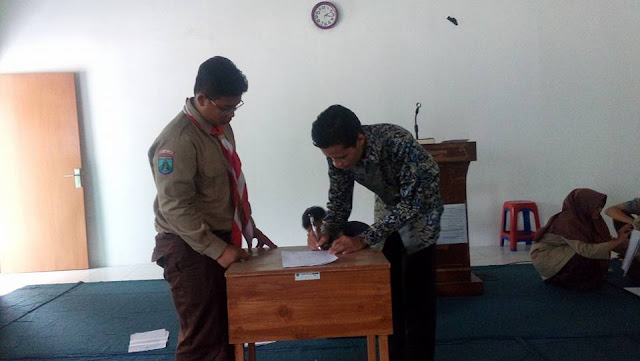Penanda tanganan Program kerja PMR Wira, Pramuka dan OSIS SMA Surya Buana Malang.
