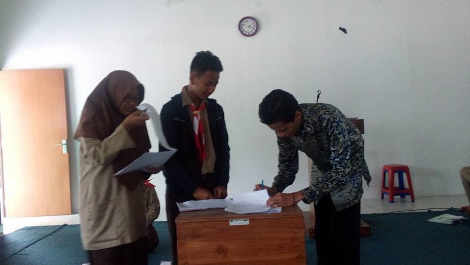 Penanda tanganan Program kerja PMR Wira, Pramuka dan OSIS SMA Surya Buana Malang.