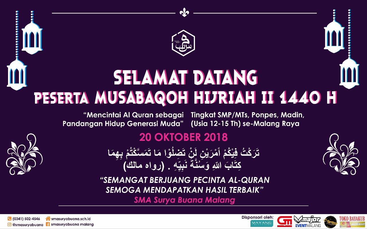 DAFTAR REKAPITULASI PESERTA MUSABAQOH HIJRIAH 1440H SMA SURYA BUANA By SMASURBA PENGUMUMAN, 19Okt, 2018 Daftar rekapitulasi peserta Musabaqoh Hijriah 1440H SMA Surya Buana Malang dapat di unduh pada link berikut:Daftar_Rekapitulasi_Fix Previous UPGRADING PENGURUS OSIS SMA SURYA BUANA MALANG Oktober 4, 2018 Next PARA JUARA MUSABAQOH HIJRIAH II 1440H SMA SURYA BUANA MALANG Oktober 20, 2018