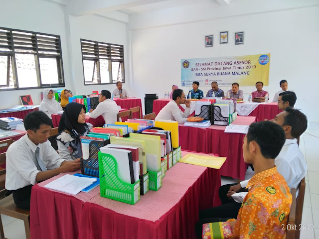 pada akreditasi ini, SMA Surya Buana di visitasi oleh Bapak Suwarman,S.Pd.,M.MT. serta bapak Wardikin,S.Pd.,M.Pd. beliau berdua menevaluasi, mengecek secara administratif dan supervisi lapangan keadaan yang sesungguhnya kondisi SMA Surya Buana Malang.