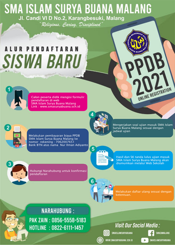 5. Hasil dan SK tanda lulus ujian masuk SMA Islam Surya Buana Malang akan diumumkan melalui Web Sekolah.